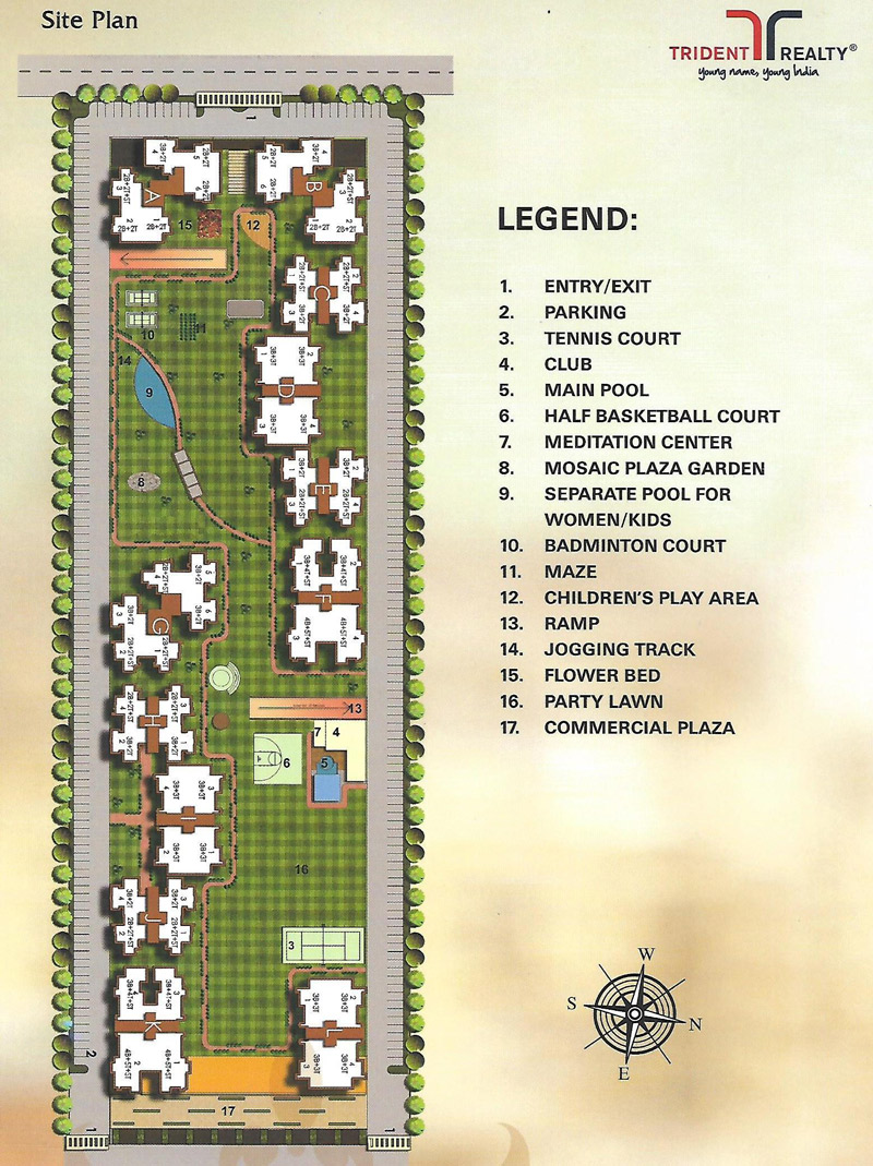 Tennis Court Club Main Pool Half BasketBall Court Meditation Center Badminton Court Maze Kids Play Area Jogging Track Flower Bad Party Lawn Commercial Plaza
